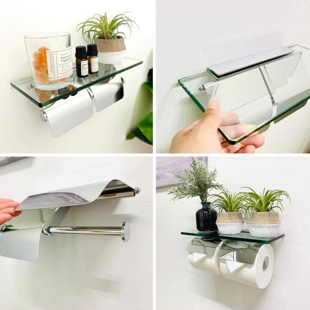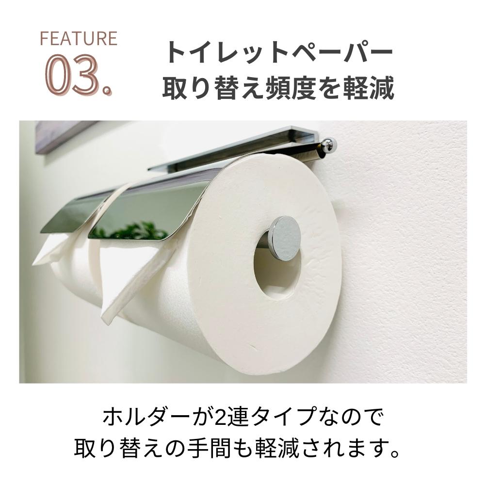 トイレットペーパーホルダー ダブル 2連 ガラス天板付き 耐荷重約6kg モダン おしゃれ インテリア 収納 トイレ トイレ用品 新生活 お手洗い ペーパーホルダー アパート 戸建て DIY プレゼント