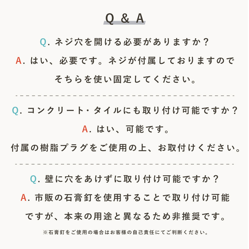 | 製品仕様003 | ・トイレットペーパーホルダー本体×1 ・ネジ×2 ・アンカー×2 |