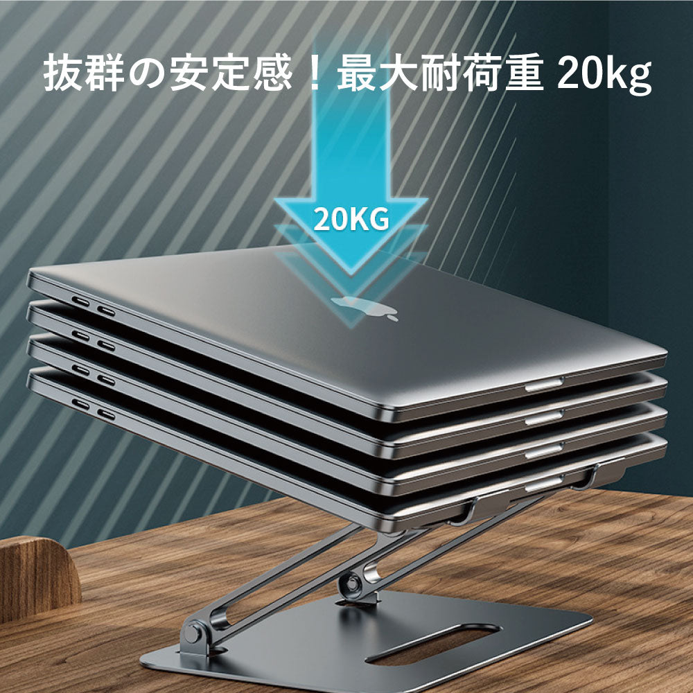 角度・高さ無段階調整!超軽量0.67kg!7〜17.3インチ機種に対応!耐荷重20kg!安定性を高める滑り止めパッド&爪!空洞デザインとアルミニウムで効率的に放熱!おしゃれな外観と質感