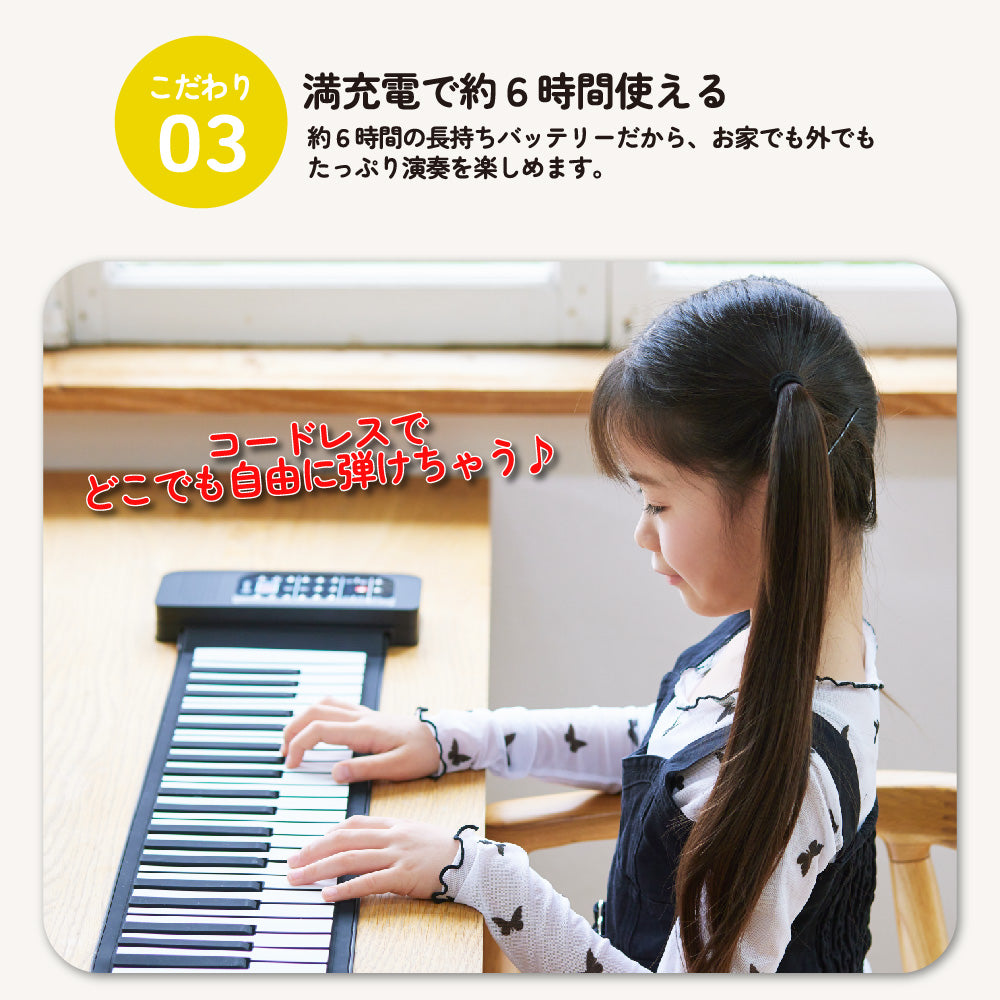 ロールアップピアノ88鍵盤 電子ピアノおもちゃ 知育玩具 3歳 4歳 5歳 6歳 女の子 ロールピアノ 鍵盤 折りたたみ 持ち運び ピアノ シリコン 薄型