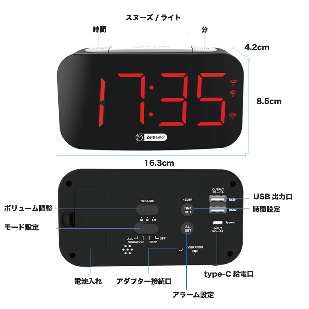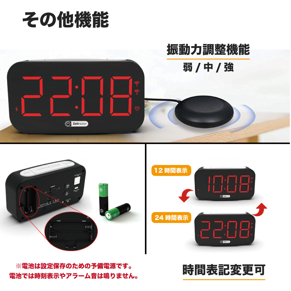 製品仕様001 強力振動 アラームクロック 目覚まし時計