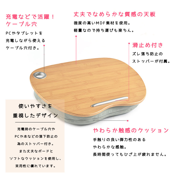 クッションテーブル 膝上テーブル テーブル クッション ノートパソコン スタンド 座椅子 枕 PC テーブル iPad タブレット 座いす 天板付き 読書 食事 ベッド テレワーク 在宅勤務 プレゼント