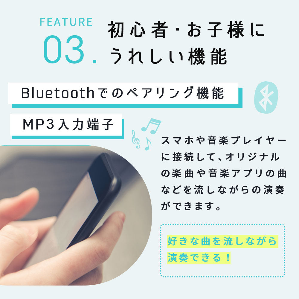 ・イヤホン装着で夜でも周りを気にせず演奏することができます。
