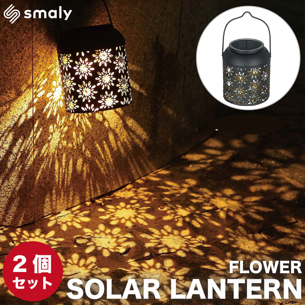 【2個セット】花柄 ガーデンライト ソーラーランタン ソーラーライト LEDランタン 夜間自動点灯 防水 屋外 テラス ベランダ 歩道 照明 防犯 ランタンスタンド フラワー おしゃれ クリスマス 飾り