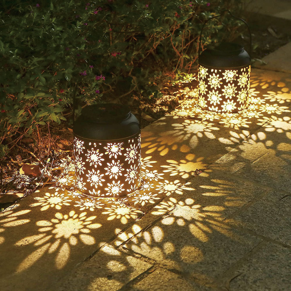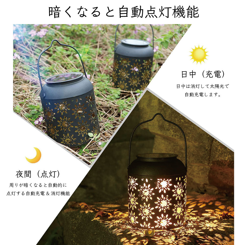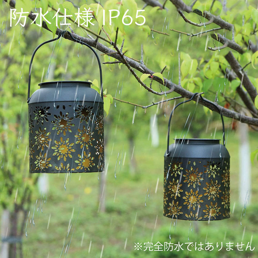 花柄ガーデンソーラーライト!2個セット!ソーラー充電式ランタン!IP65防水!吊り下げフック付き!自動点消灯機能!かわいい花柄