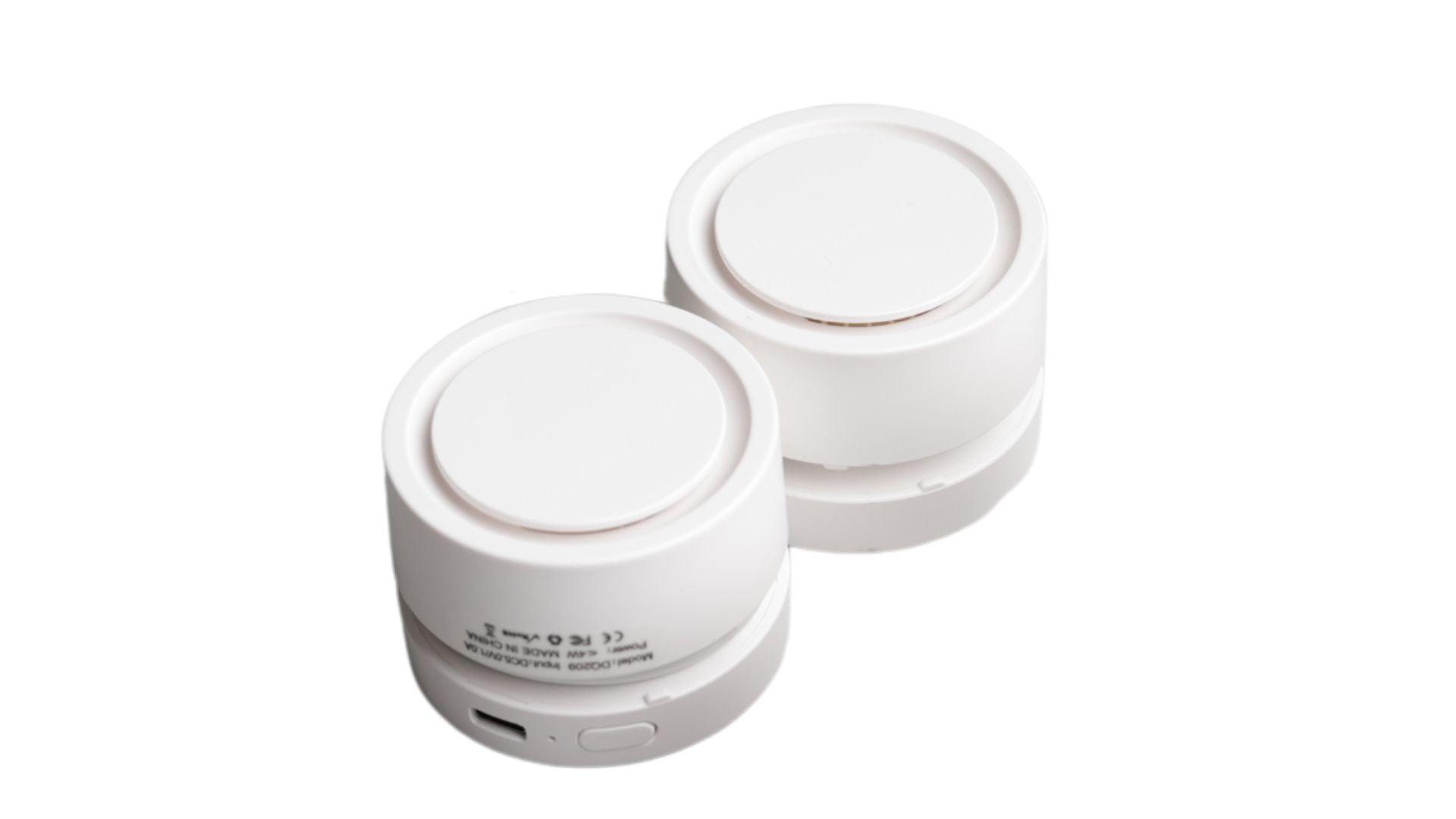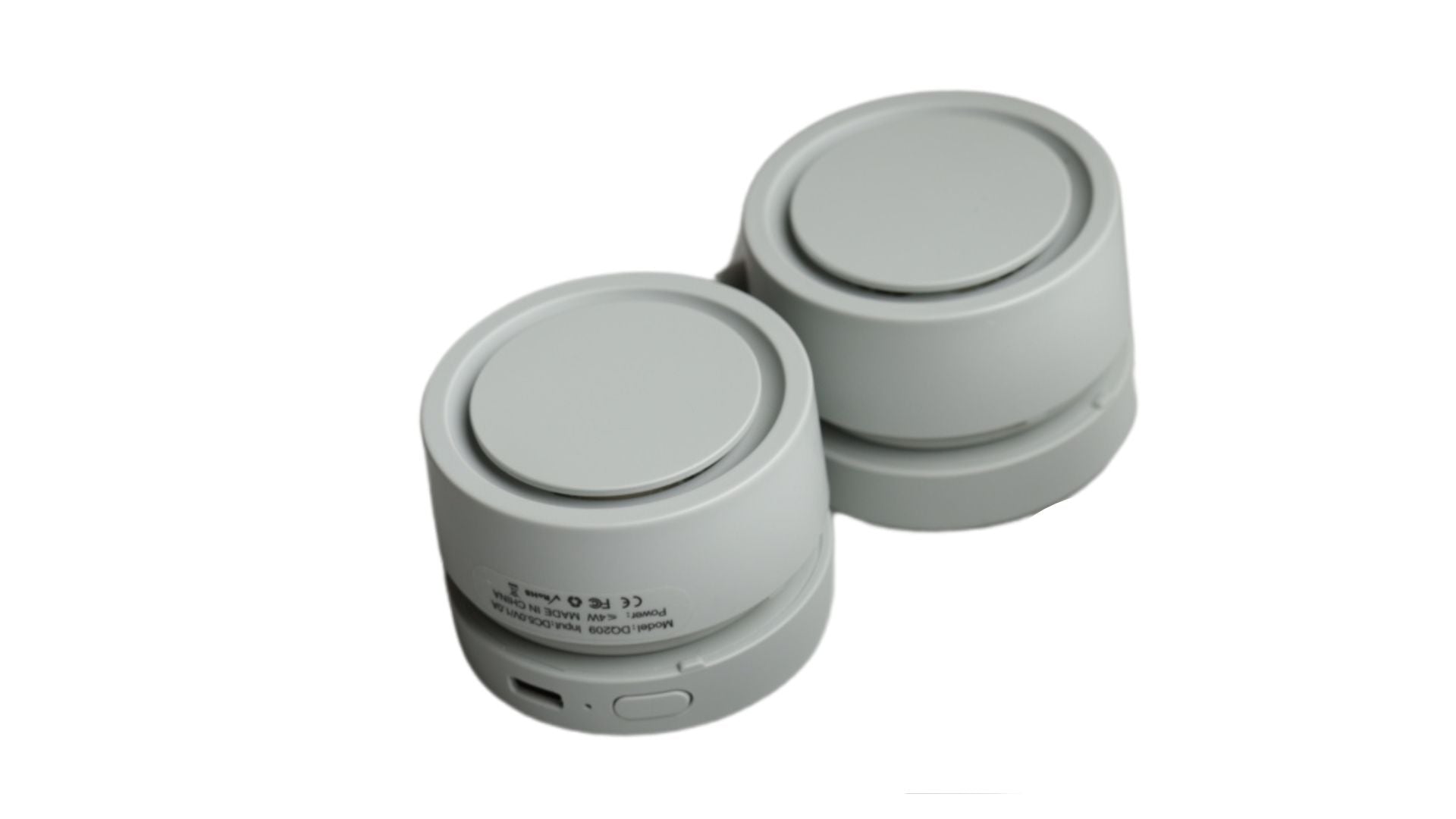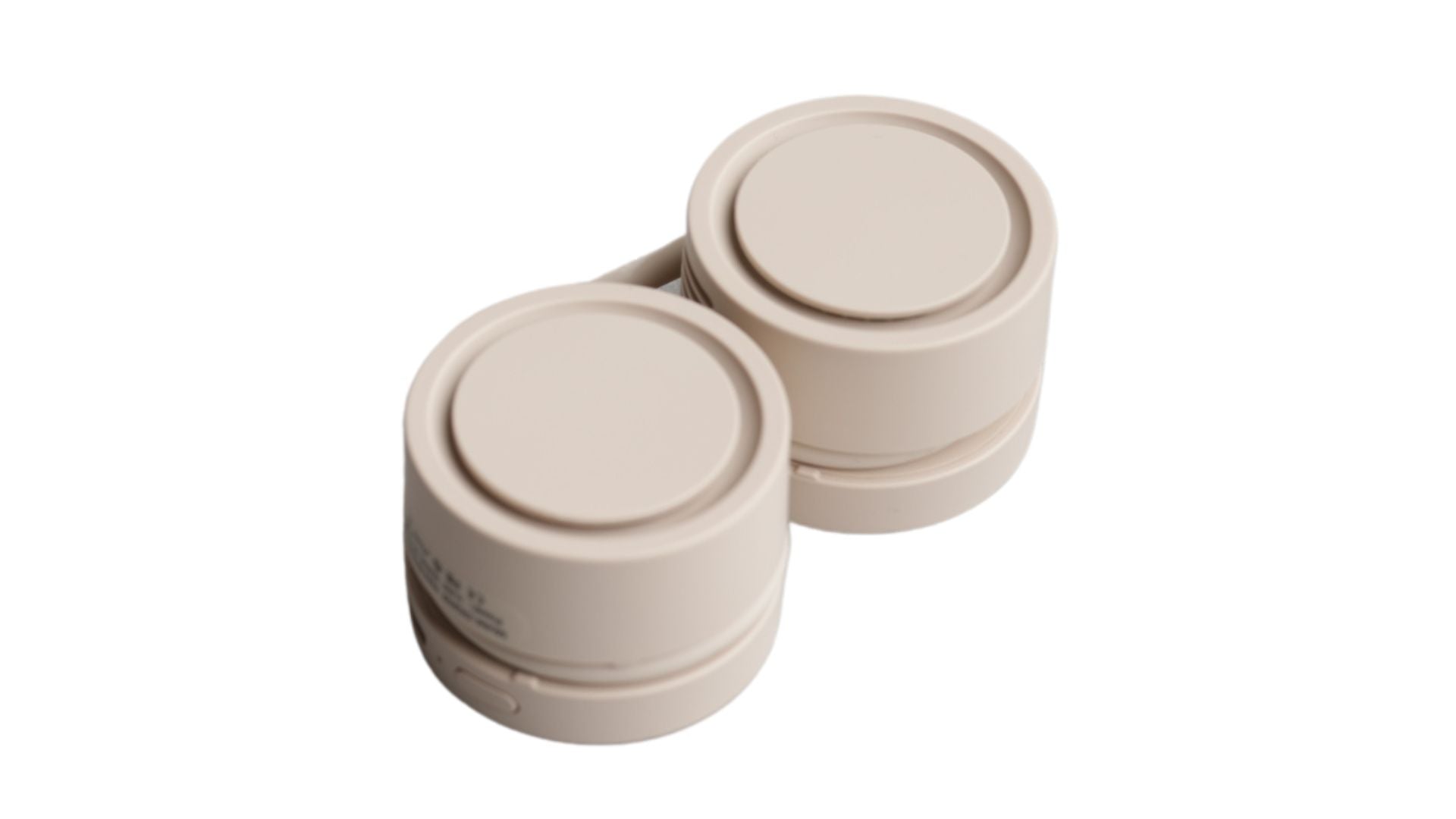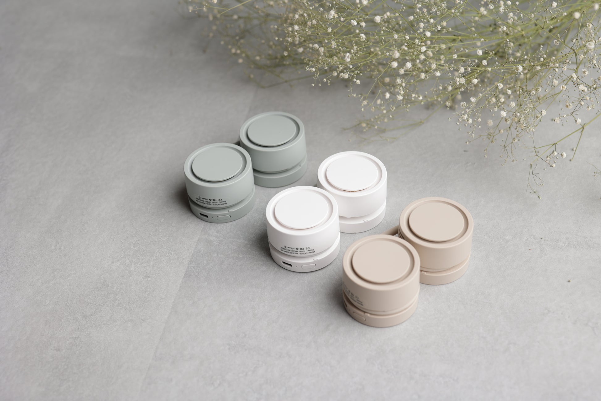 - くるくる巻いてコンパクトに収納できるネックファン。収納ポーチ付きでお出かけにも便利