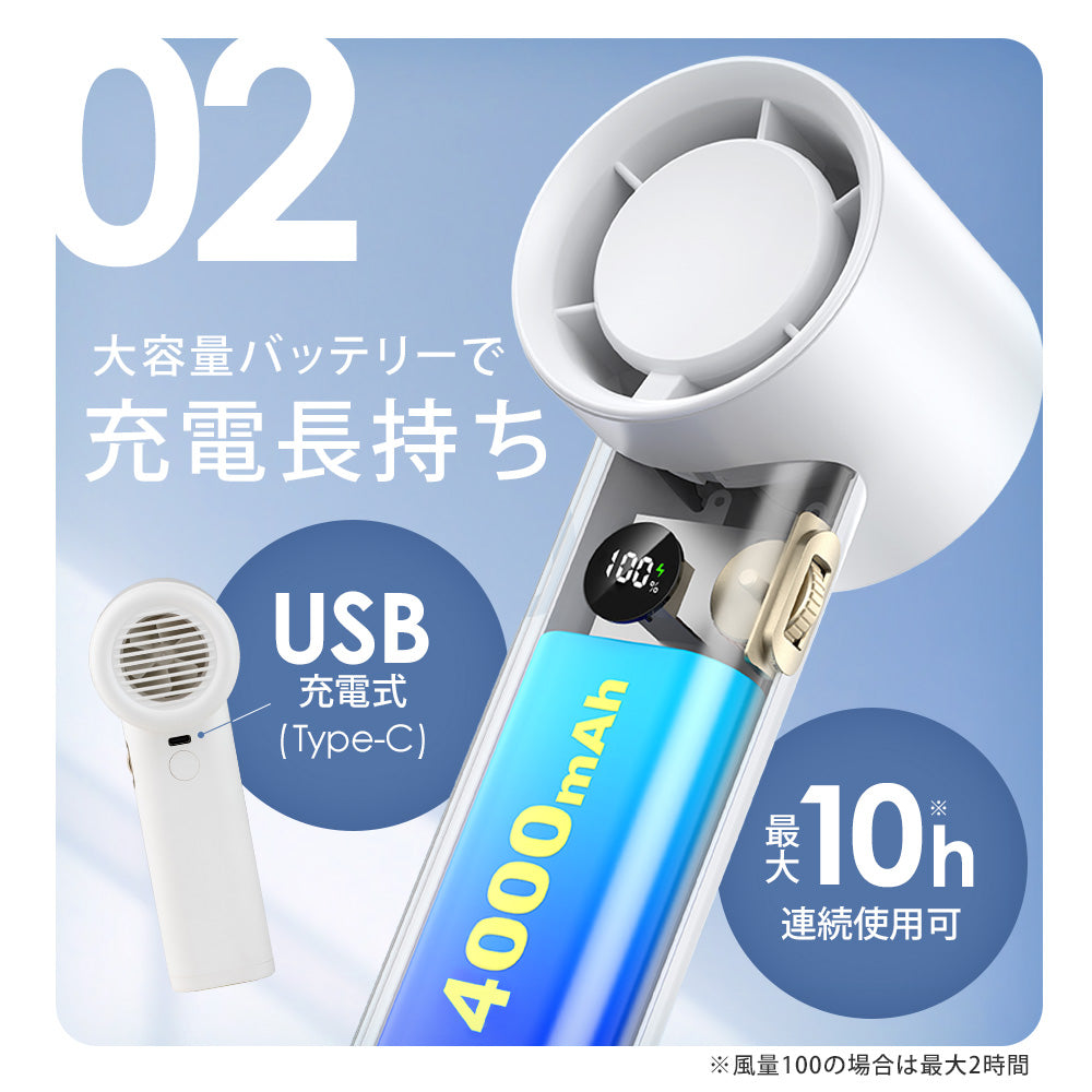 ・USB充電式(Type-C):充電残量が確認できるデジタル表示